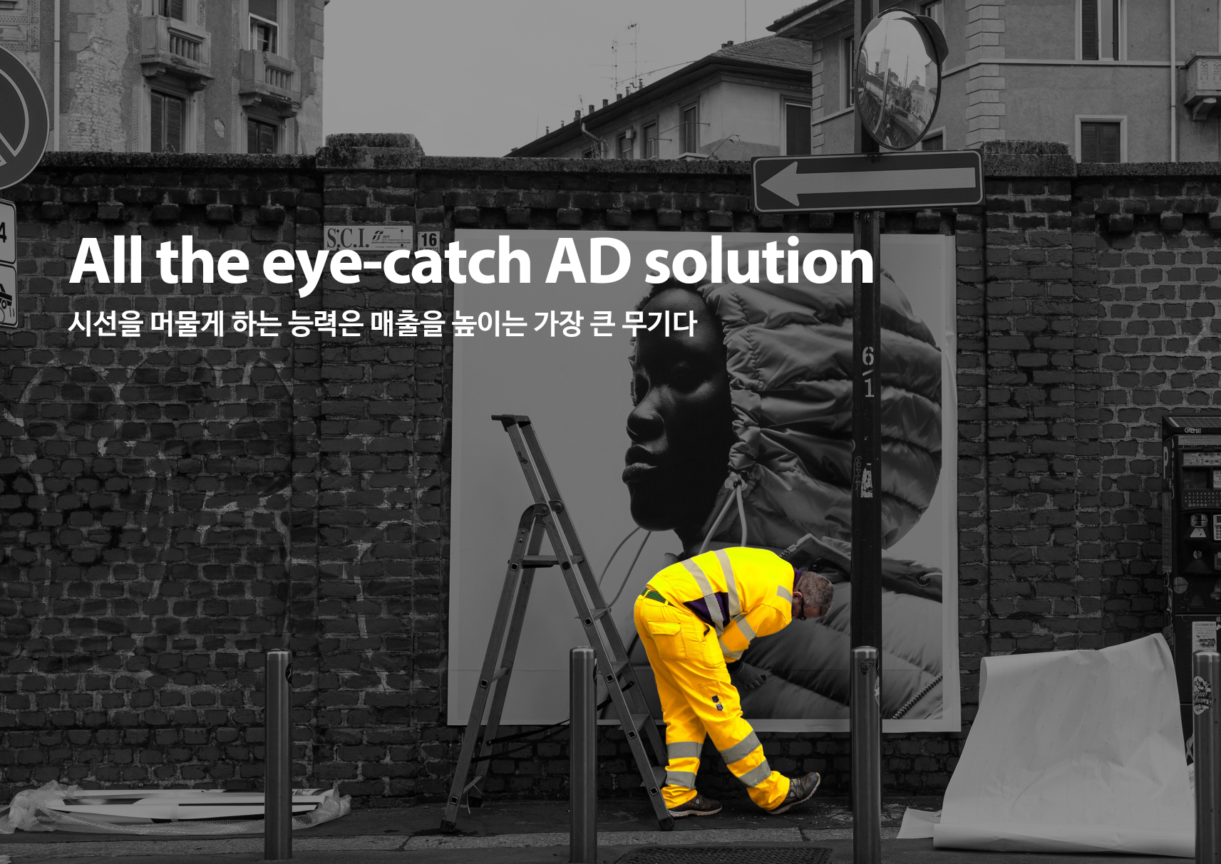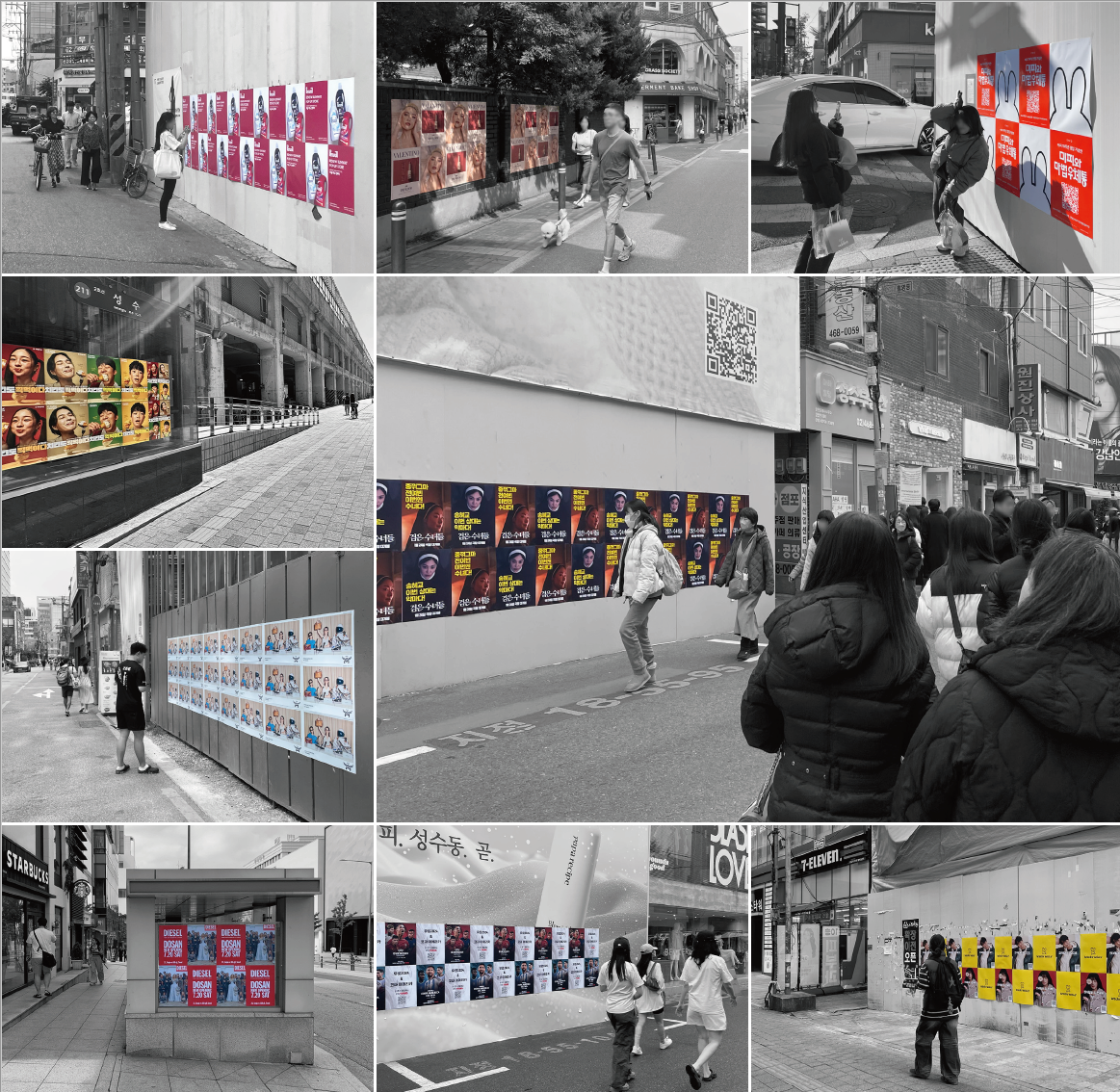 유동인구가 많은 길거리의 건물외벽이나 주차펜스, 빈 벽면 등에 포스터를 원하는