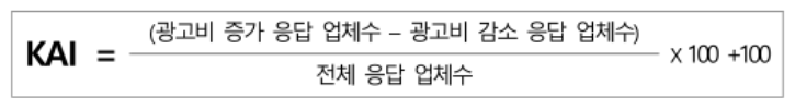 통계청 국가승인통계인 광고경기전망지수(KAI)는 매월 국내 560여 개 광고주에게 다음달 광고지출 증감여부를 물어 응답값을 지수화한 자료로서, 해당 업종 광고주 중 광고지출이 늘어날 것이라 응답한 사업체가 많을수록 100을 넘고, 반대면 100 미만이 됩니다. 또한 매체별 광고비 집행 전망도 별도로 조사해 발표하고 있습니다.