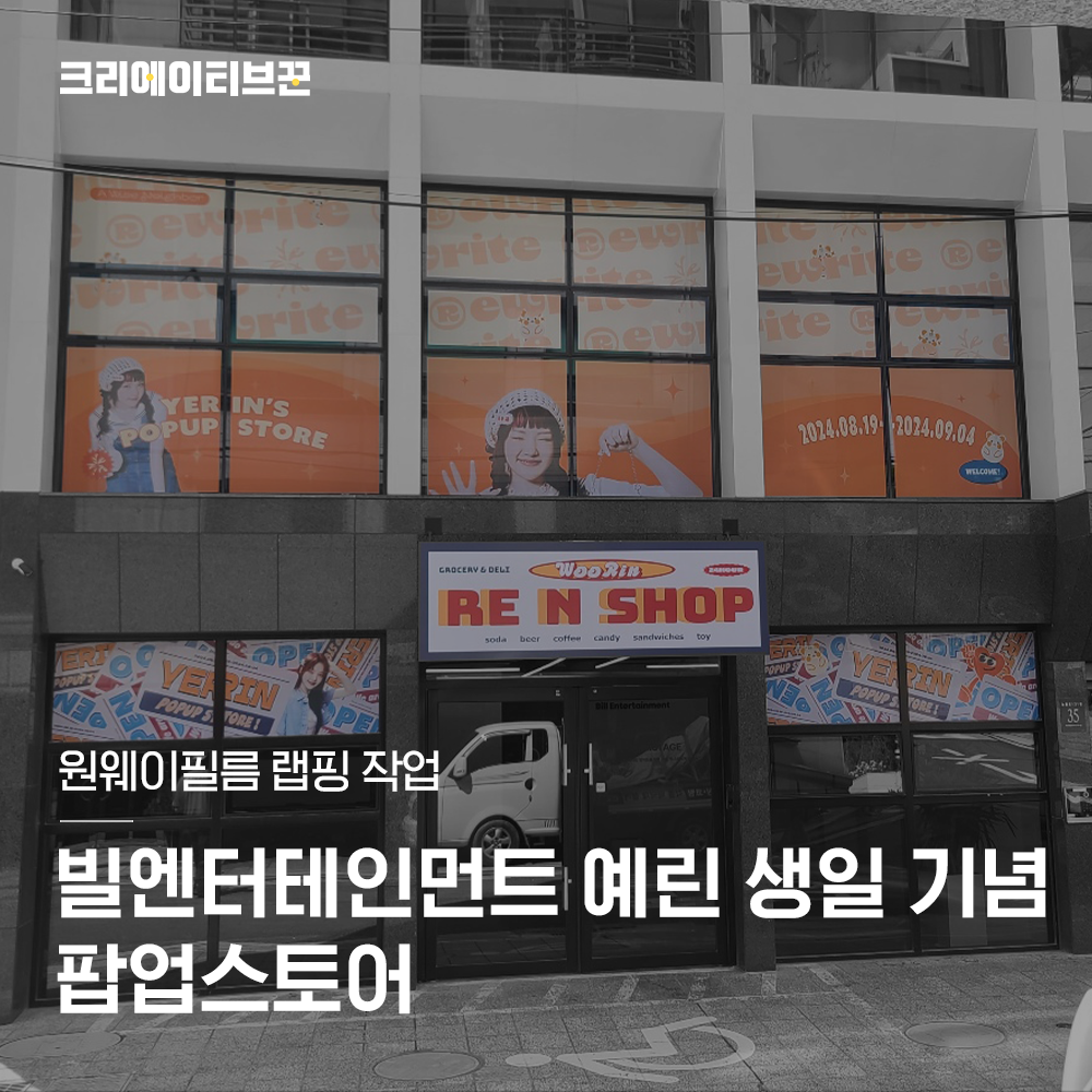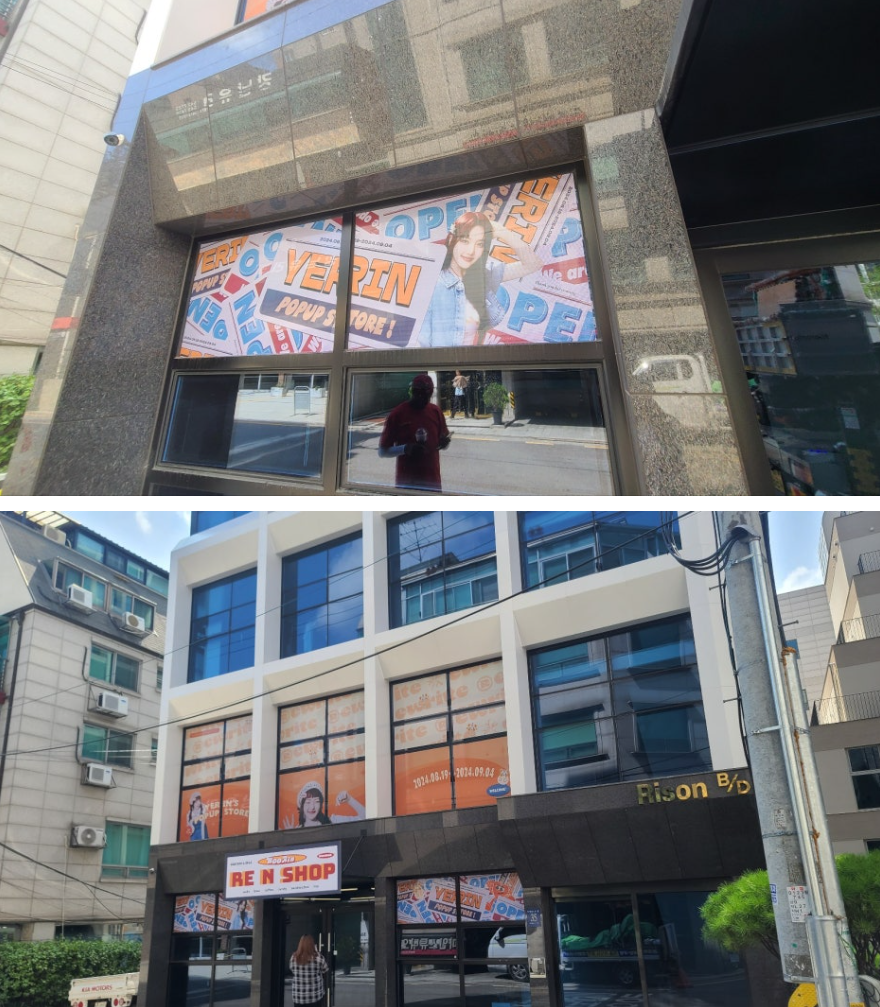 빌엔터는 걸그룹 여자친구의 멤버였던 예린의 소속사로, 8월 19일 예린의 생일을 축하하며 예린 생일 기념 팝업스토어 오픈 홍보를 위해 건물 래핑을 진행한 것이죠.