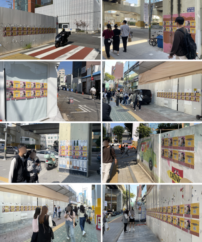 크리에이티브꾼은 게릴라 포스터 광고 진행시에 메인타겟의 동선을 디테일하게 분석하여