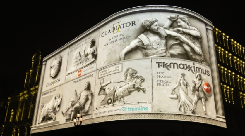 영화 '글래디에이터2' 홍보를 위해 브랜드 그리고 광고회사가 함께한 피카딜리 라이츠 DOOH |