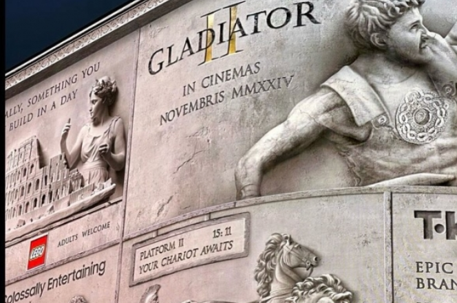 지난 11월 8일, 피카딜리 라이츠(Piccadilly Lights)에 돌로 만든 패치워크(색깔, 무늬, 크기, 모양이 각기 다른 여러 가지 이미지를 이어붙여 하나로 만드는 것) 가 나타났습니다. 손으로 조각한 석조 벽화 형태로 재탄생한 디지털 스크린에는 총 5개 브랜드의 광고가 포함되었으며, 모두 로마 A.D. 211년의 스타일로 제작되었습니다. 이번 캠페인은 파라마운트 픽처스(Paramount Pictures)가 미국의 광고대행사인 웨이브메이커(Wavemaker)와 함께 기획한 것으로, 11월 15일 개봉하는 블록버스터 <글래디에이터2>를 홍보하기 위함이었습니다.