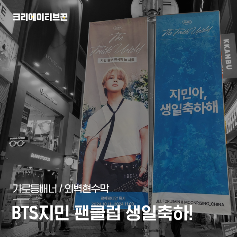 오늘 소개해드릴 내용은 BTS지민 생일축하에 관한 가로등배너와 외벽현수막입니다. |