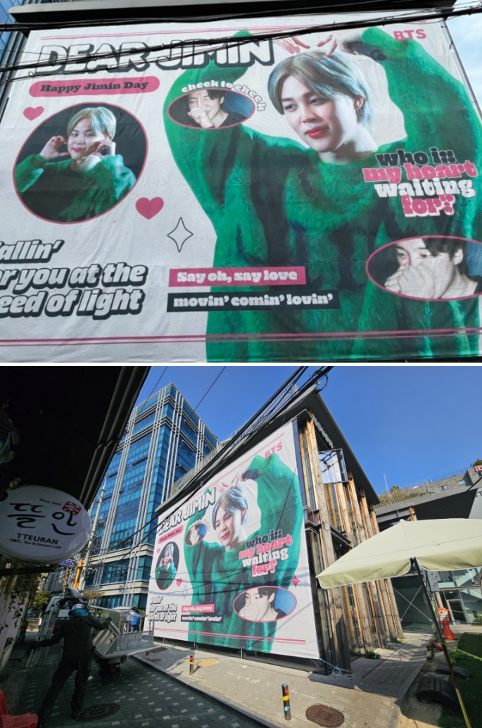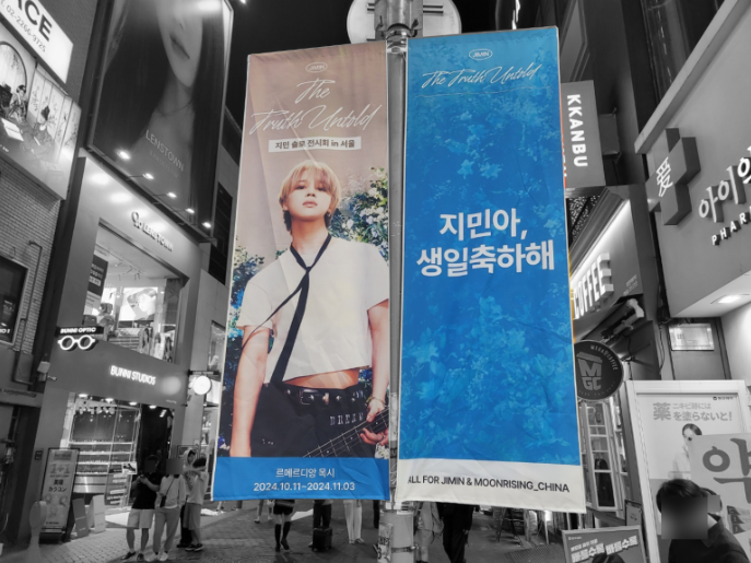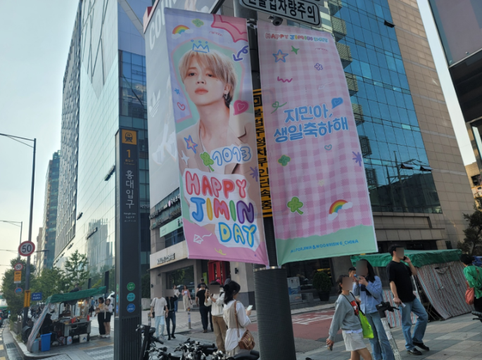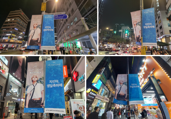 이번 생일을 맞아 BTS지민의 팬클럽 여러분들이 가로등배너와 외벽현수막 등,