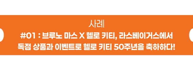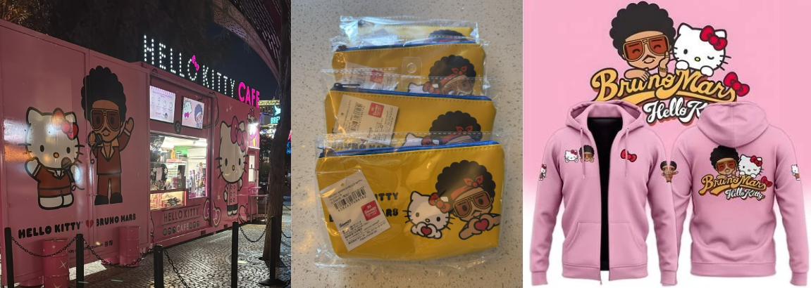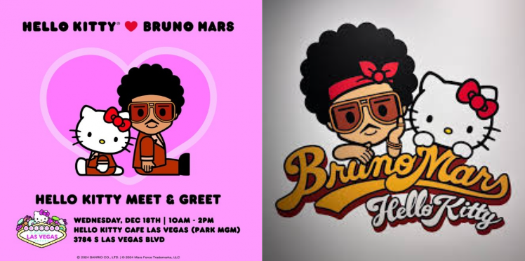 헬로 키티와 브루노 마스는 헬로 키티의의 50주년을 기념하기 위해 라스베이거스에서 독특한 이벤트와 독점 상품을 출시했습니다. 이 파트너십은 브루노 마스의 돌비 라이브 앳 파크 MGM(Dolby Live at Park MGM) 홀리데이 레지던스와 맞물려 12월 18일에 진행되었습니다. |